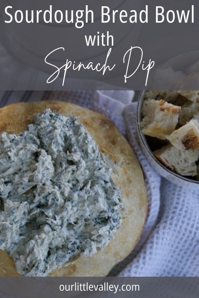 This yummy spinach dip served in a homemade sourdough bread bowl is sure to be a hit at your next gathering!